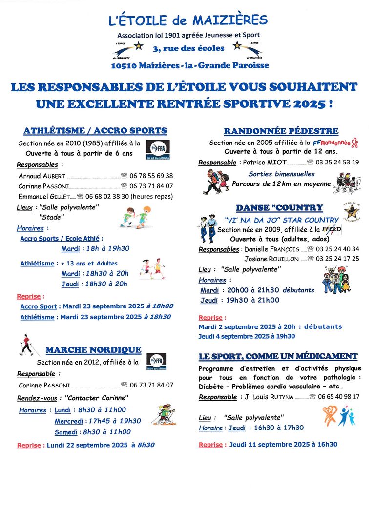 L’ÉTOILE DE MAIZIERES est une association omnisports régie par la loi du 1er juillet 1901 et agréée Jeunesse et Sports. L'objet principal est la pratique sportive institutionnalisée, le développement des loisirs et l'organisation de toute manifestation visant à la diffusion du sport